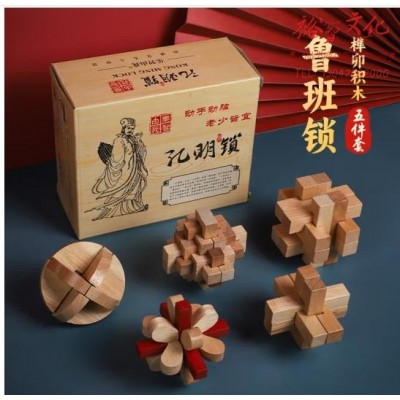 乐智由我孔明锁鲁班锁五件套榫卯积木儿童智力解锁玩具 (SKU:yzwhyp943655