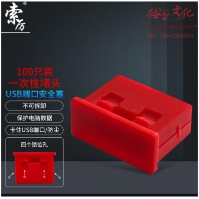索厉 USB封口塞/USB口安全塞/USB一次性堵头/USB防尘塞/硬塑料材质/内嵌式设计/红色100装/PRU100 (SKU:yzwhyp943674