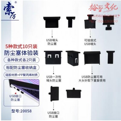 索厉 USB防尘塞/USB堵头/一次性堵头/可拆堵头/5种款式各2个/黑色10个装/20058 (SKU:yzwhyp943678