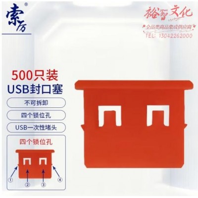 索厉 USB封口塞/USB口安全塞/USB一次性堵头/USB防尘塞/硬塑料材质/抽屉式设计/红色500装/20065 (SKU:yzwhyp943695