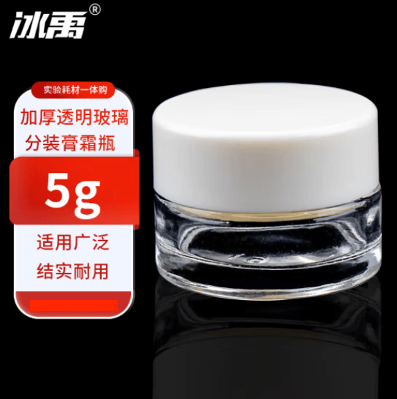 首页 > 仪器仪表 > 生物、医学样品制备设备 > 冰禹 BT-297 实验室透明玻璃药膏瓶 称量小样带盖分装膏霜瓶 迷你小空瓶 5g(10个起订) (SKU:yzwhyp943703
