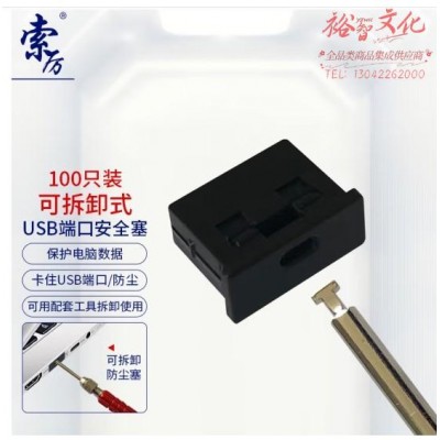 索厉 USB安全锁可拆卸式USB安全塞封口塞防尘塞/USB通用堵头安全塞/工具2把 黑色塞子100个装/20085 (SKU:yzwhyp943714