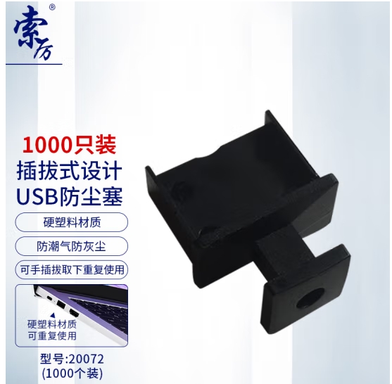 索厉 USB防尘塞/可插拔式USB堵头/防尘防灰便于插拔/小尾巴设计/塑料材质/黑色1000个装/20072 (SKU:yzwhyp943719