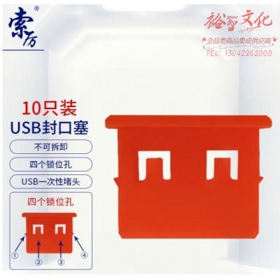 索厉 USB封口塞/USB口安全塞/USB一次性堵头/USB防尘塞/硬塑料材质/抽屉式设计/红色10装/20061 (SKU:yzwhyp943723