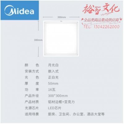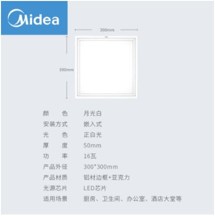 美的(Midea) LED集成吊顶灯 平板灯led面板灯铝扣板厨房灯厨卫灯300*300白光16瓦MQD16-MK-F06(SKU:yzwhyp943756