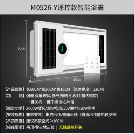美的(Midea)安全速热风暖浴霸大功率强劲双核感应小夜灯遥控暖风机适用集成吊顶M0526-Y(SKU:yzwhyp943757