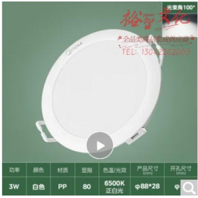 美的(Midea)LED超薄筒灯客厅吊顶射灯过道嵌入式孔灯牛眼灯3瓦白光 开孔7.5cm (SKU:yzwhyp943838