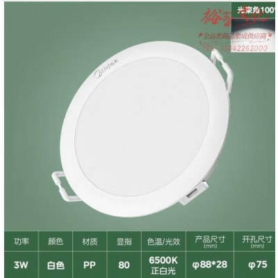 美的(Midea)LED超薄筒灯客厅吊顶射灯过道嵌入式孔灯牛眼灯3瓦白光 开孔7.5cm (SKU:yzwhyp943846