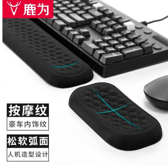 鹿为 记忆棉鼠标垫慢回弹护腕键盘托 娱乐办公游戏滑鼠标手托垫 STAB1 按摩纹套餐-大号 单手托-黑色 (SKU:yzwhyp943901