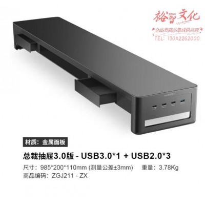鹿为 显示器增高架笔记本收纳置物 桌面台式双屏 抬高底座usb扩展 支架 高配抽屉加长版ZGJ211-ZX (SKU:yzwhyp943958