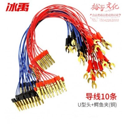 冰禹 BY-3141 导线实验用 连接线空心插物理电学实验器材 一头U型一头鳄鱼夹(铜)10条 (SKU:yzwhyp944175