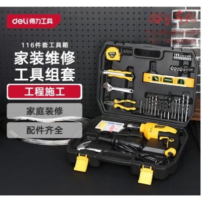 得力(deli)600W冲击钻手电钻维修套装116件家用多功能工具箱电动工具套装 (SKU:yzwhyp944267