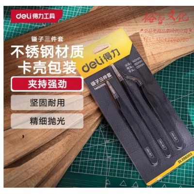 得力(deli)镊子工具套装防静电不锈钢高精密维修小工具尖头弯头平头镊 (SKU:yzwhyp944285