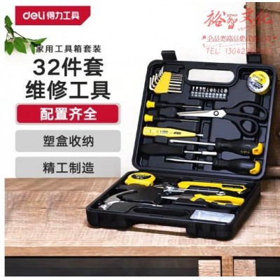 得力(deli)家用工具箱套装电工木工电讯维修组套五金手动工具套装32件套 (SKU:yzwhyp944305