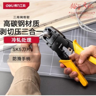 得力(deli)三用网络钳水晶段子压接钳压线钳网线钳剥线钳4P/6P/8P (SKU:yzwhyp944371