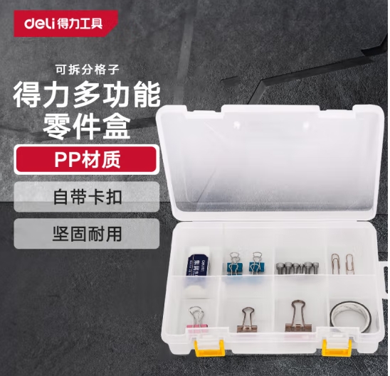 得力(deli)多功能零件盒收纳盒透明可拆分8格零件储物盒 DL432002 (SKU:yzwhyp944382