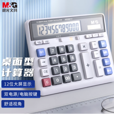 首页 > 办公设备 > 计算器 > 晨光(M&G)文具电脑按键计算器 太阳能双电源桌面计算机 12位大屏幕计算机 单个装