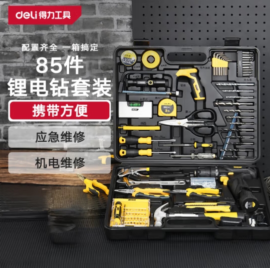 得力(deli)85件套充电式手电钻锂电钻螺丝刀多功能家用工具箱套装 DL1085L (SKU:yzwhyp944443