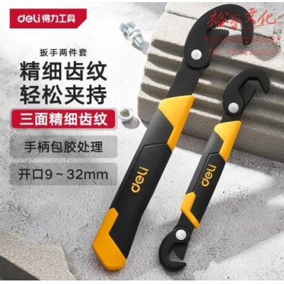 得力(deli)多功能扳手二件套水管钳活动管钳万用扳手活动扳子套装 DL932-2A (SKU:yzwhyp944555
