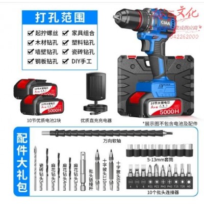 CIAA德国 无刷手电钻多功能小钢炮大功率锂电钻冲击21V工业级大扭力 冲击款【两块10节5000H电池】 (SKU:yzwhyp944610