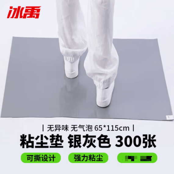冰禹 BYS-368 粘尘垫 可撕式鞋底粘尘地垫防灰尘静电无尘实验室脚踏胶垫洁净除尘垫 银灰65*115cm(300张) (SKU:yzwhyp944620