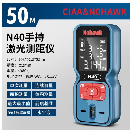 首页 > 建筑建材 > 电动工具 > CIAA德国 激光红外线测距仪电子尺激光尺手持高精度量房仪迷你测量仪 专业版50米(水平泡)电池版 (SKU:yzwhyp944627