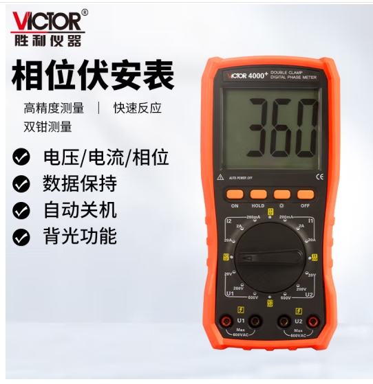 胜利仪器(VICTOR)双钳数字相位伏安表 三相相序检测仪 数字相位表 VC4000 (SKU:yzwhyp944722