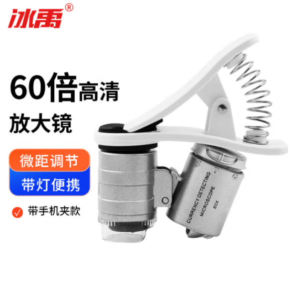 冰禹 BT-131 高倍放大镜 60倍高清led带灯便携迷你显微镜 带手机夹款 (SKU:yzwhyp944727