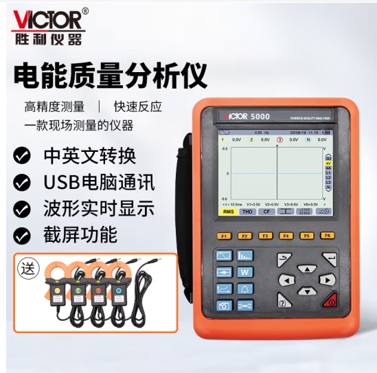 胜利仪器(VICTOR)VC5000 电能质量分析仪 三相电能表 电力谐波测试仪 40mm电流钳 (SKU:yzwhyp944736