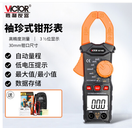 胜利仪器(VICTOR)小型便携钳形表万用表数字高精度全自动防烧钳型电流表钳流电工万能表VC6016B (SKU:yzwhyp944745