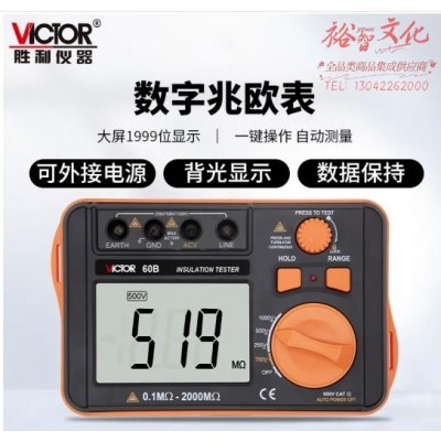 胜利仪器(VICTOR)VC60B数字兆欧表 绝缘电阻测试仪250V/500V/1000V 数字摇表 (SKU:yzwhyp944777