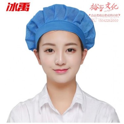 冰禹 BYS-381 防尘工作帽 透气松紧可调男女包头帽 实验室车间工厂网帽 宽边蓝色 (SKU:yzwhyp944785