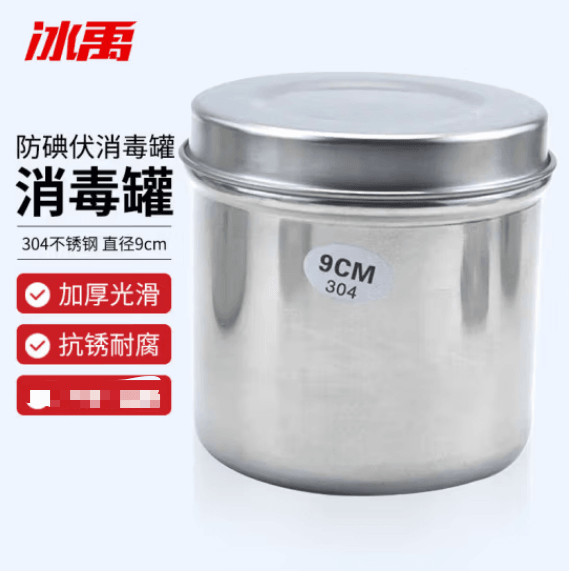 冰禹 Bt23 消毒罐 实验室防碘伏酒精棉球罐药品罐 304不锈钢 9cm (SKU:yzwhyp944854
