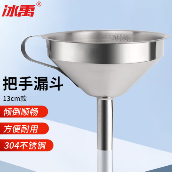 冰禹 BT-63 304不锈钢漏斗 实验室锥形酒漏 加厚不锈钢油漏斗带把手分装工具 13CM (SKU:yzwhyp944881