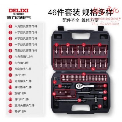 德力西电气棘轮扳手46件套6.3mm汽修套筒组套 摩托车汽修棘轮套筒 (SKU:yzwhyp945057