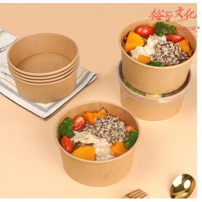 一次性餐盒牛皮纸碗加厚可降解带盖打包盒露营餐具圆形1000ml (SKU:yzwhyp945382