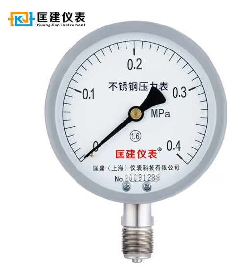 匡建仪表(CONJANT)Y-100BF 304不锈钢压力表 防腐耐高温抗酸碱 0-0.4mpa (SKU:yzwhyp945660