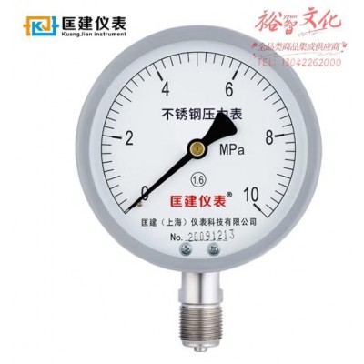 首页 > 建筑建材 > 五金附件 > 匡建仪表(CONJANT)Y-100BF 304不锈钢压力表 防腐耐高温抗酸碱 0-10mpa (SKU:yzwhyp945674