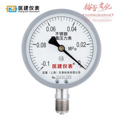 匡建仪表(CONJANT)YTN-100BF 304不锈钢耐震压力表防腐耐高温 -0.1 0mpa (SKU:yzwhyp945695