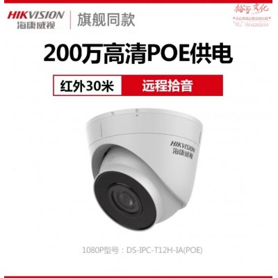 首页 > 信息化设备 > 摄像头 > 海康威视HIKVISION 监控摄像头 200万室内外监控器 拾音红外夜视30米可录音POE网线供电手机远程 T12H-IA 2.8MM (SKU:yzwhyp946060
