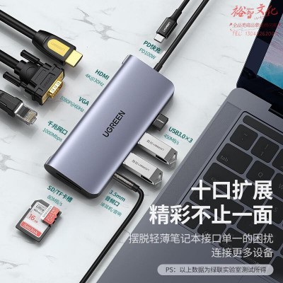 绿联 Type-C扩展坞通用 iPadPro苹果 USB-C转HDMI线转换器4K投屏VGA拓展坞网口转接头音频(SKU:yzwhyp946402