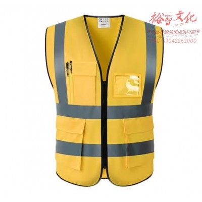 美安明反光背心工地建筑马甲多口袋款透气反光衣金黄色 旗布 (SKU:yzwhyp946571