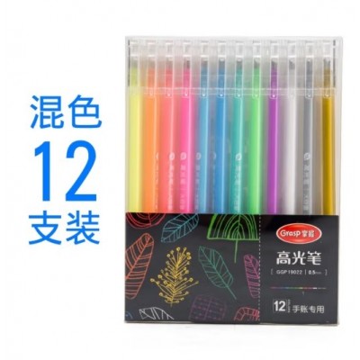 掌握(GRASP)彩色高光笔 彩色手账笔中性笔学生重点标记签字笔白色绘画笔水笔全针管手绘动漫 12支装