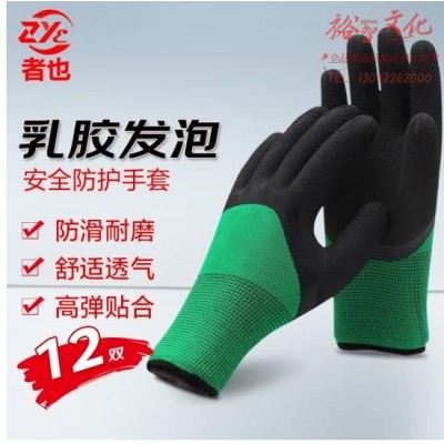 者也 乳胶发泡手套 浸胶防滑耐油透气劳保手套 黑绿 (SKU:yzwhyp946588