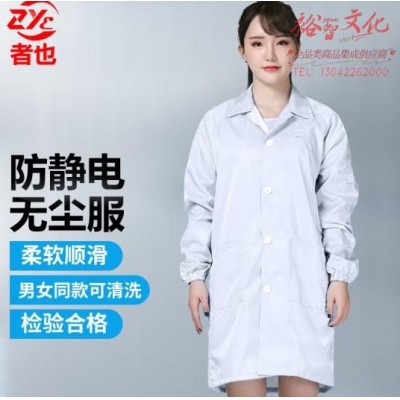 者也 防静电无尘服电子厂洁净工作服 条纹大褂白色 白色 XL码 (SKU:yzwhyp946643