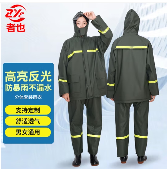 者也 分体雨衣1套 绿色PVC针织骑行外卖反光警示雨披 升级款4XL码 (SKU:yzwhyp946721