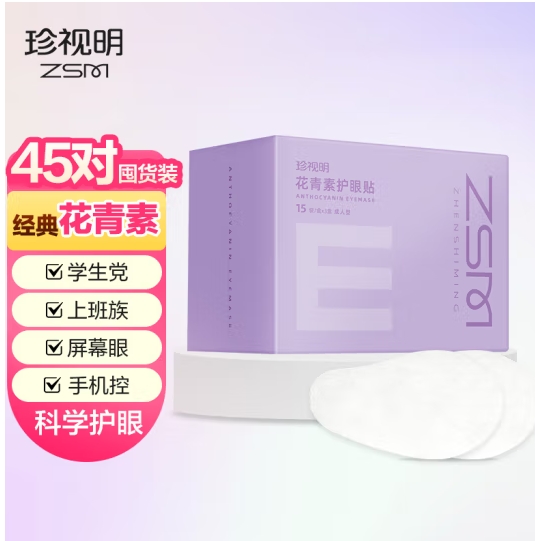珍视明花青素护眼贴成人型3盒(45对) 清凉敷贴中老年男女士通用大学生冷敷眼膜贴 (SKU:yzwhyp946724