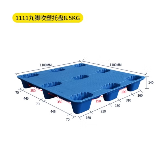 京顿塑料托盘叉车托盘仓库垫仓板防潮板卡板九脚吹塑托盘110*110*14cm(静载2.5T) (SKU:yzwhyp946869