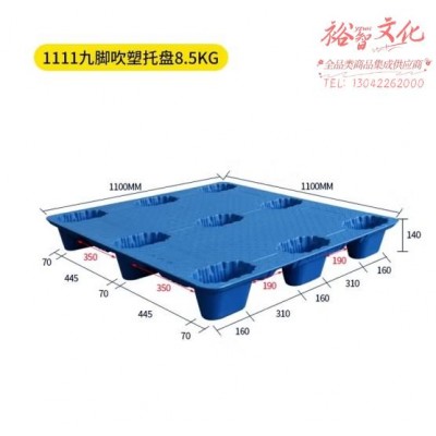 首页 > 建筑建材 > 五金附件 > 京顿塑料托盘叉车托盘仓库垫仓板防潮板卡板九脚吹塑托盘110*110*14cm(静载2.5T) (SKU:yzwhyp946869