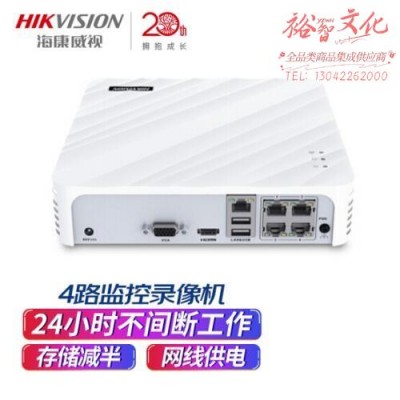 海康威视 网络硬盘录像机监控4路POE网线供电NVR满配4个摄像头1080P解码7104N-F1/4P(SKU:yzwhyp946918